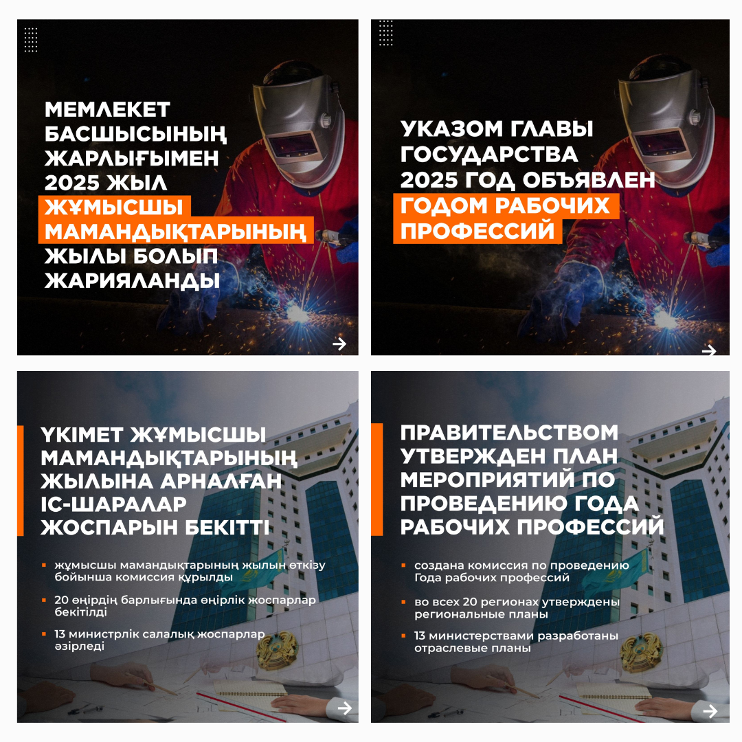 10 январь 2025 0 1 2 3 4 5 Мемлекет басшысының жарлығымен 2025 жыл "Жұмысшы мамандықтарының" жылы болып жарияланды Мемлекет басшысының жарлығымен 2025 жыл "Жұмысшы мамандықтарының" жылы болып жарияланды. Осы беттің QR-коды:QR-код этой страницы: