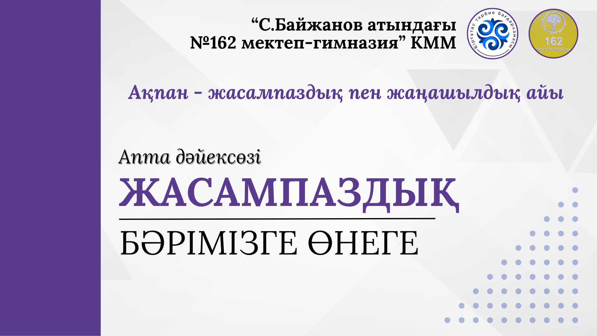 03 февраль 2025 0 1 2 3 4 5 Апта дәйексөзі Ақпан айының 1 апта дәйексөзі: Жасампаздық - бәрімізге өнеге. Осы беттің QR-коды:QR-код этой страницы: