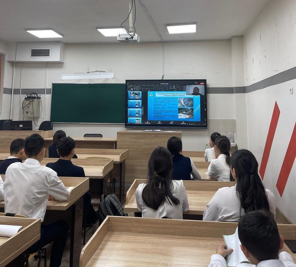 Алматы қаласы Төтенше жағдайлар департаментінің қатысуымен Алматы қаласы білім беру ұйымдарында 2024 - 2025 оқу жылына арналған «Өскелең ұрпақ арасындағы қауіпсіздік мәдениеті» ұранымен "Сел қаупі кезіндегі халықтың әрекеті" тақырыбында онлайн қауіпсіздік сабағы өткізілді.