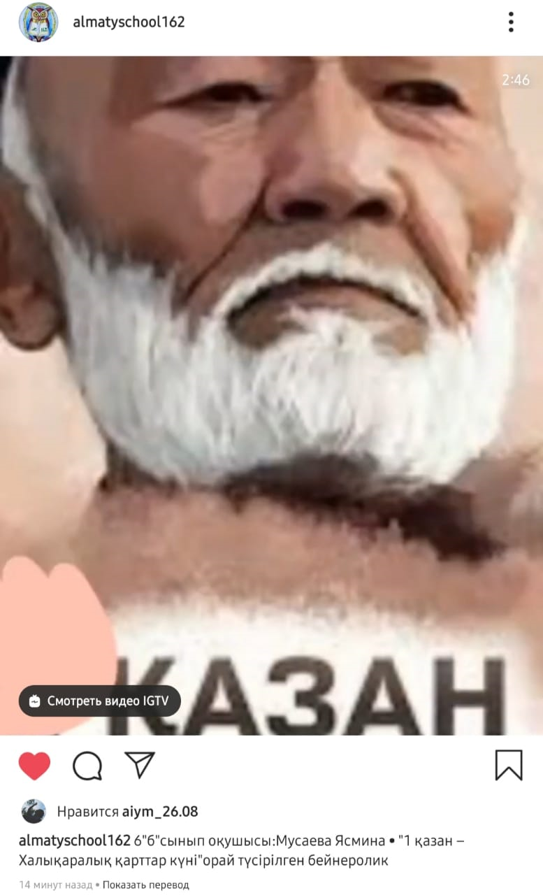 29 сентябрь 2020 0 1 2 3 4 5 Алматы қаласы Турксіб ауданы №162мектеп-гимназияның 6"Б"сынып оқушысы:Мусаева Ясмина "1 қазан – Халықаралық қарттар күні"орай түсірілген бейнеролик Осы беттің QR-коды:QR-код этой страницы:
