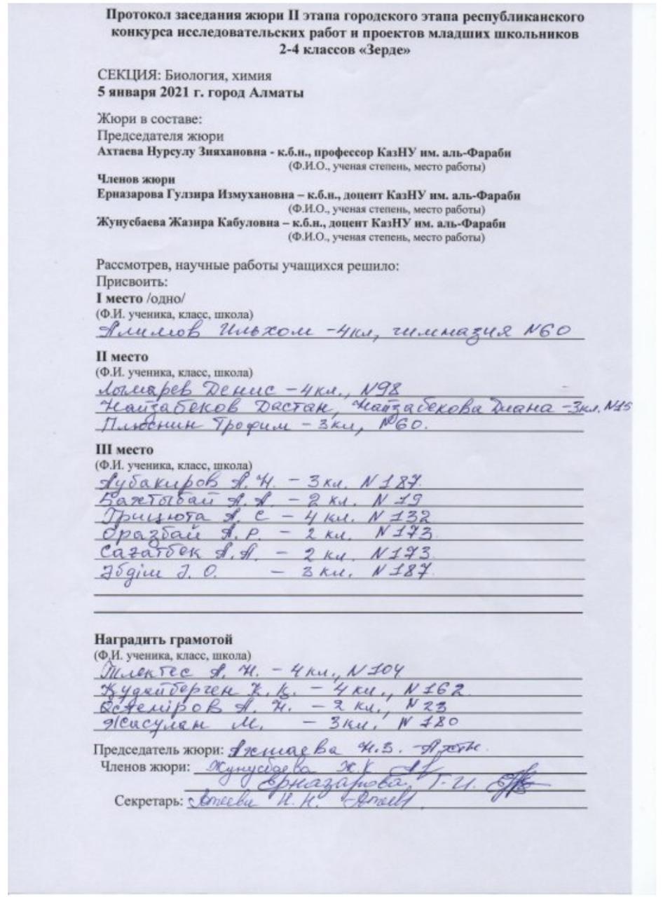 Алматы қаласы Турксіб ауданы №162 мектеп-гимназияның 4"Ә"сынып оқушысы:Құдайберген Көркем сынып жетекшісі:Нуржакипова Маржан Бейсенқызы."Зеде" байқауына 4 жұмыс ұсынылып, соның ішінде іріктеуден өтіп, қалалық деңгейде ll орын иеленді