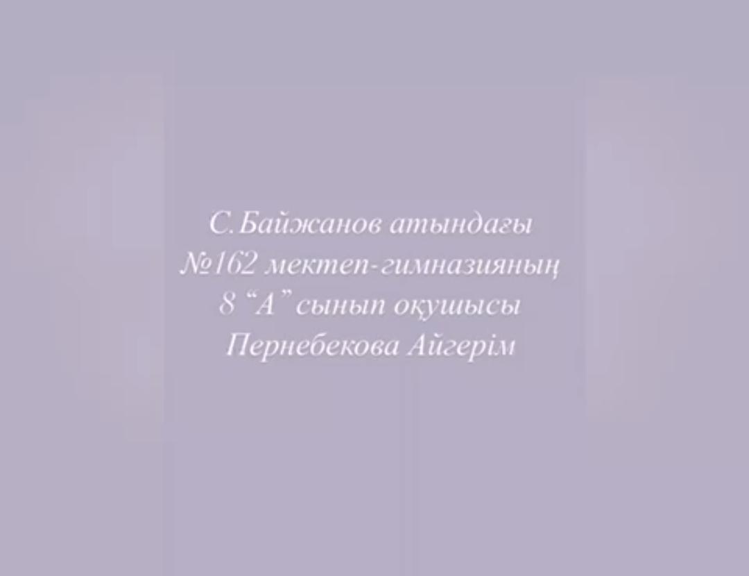 28 апрель 2021 0 1 2 3 4 5 Алматы қаласы Турксіб ауданы №162 мектеп-гимназияның 8 "А"сынып оқушысы: Пернебекова Айгерім "Жер Ана- ортақ үйіміз"экологиялық апталық Осы беттің QR-коды:QR-код этой страницы: