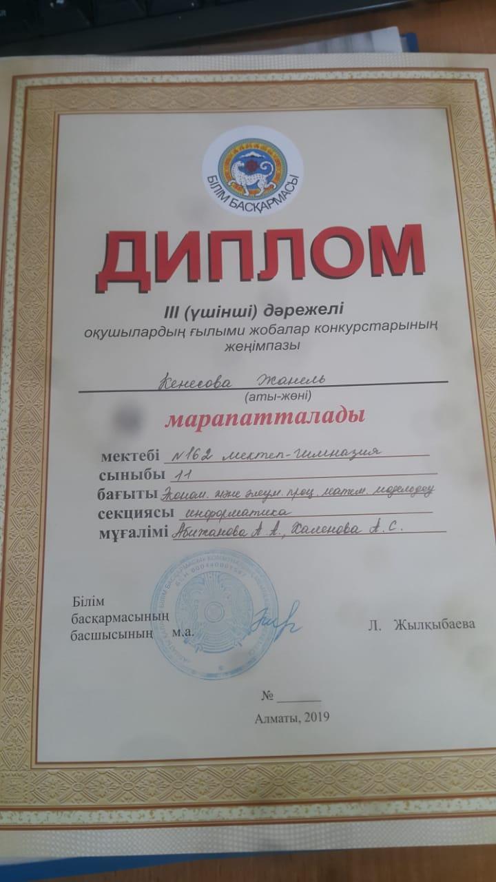 18 январь 2020 0 1 2 3 4 5 2019 оқу жылындағы информатика пәнінен ғылыми жоба жүлдегері Осы беттің QR-коды:QR-код этой страницы: