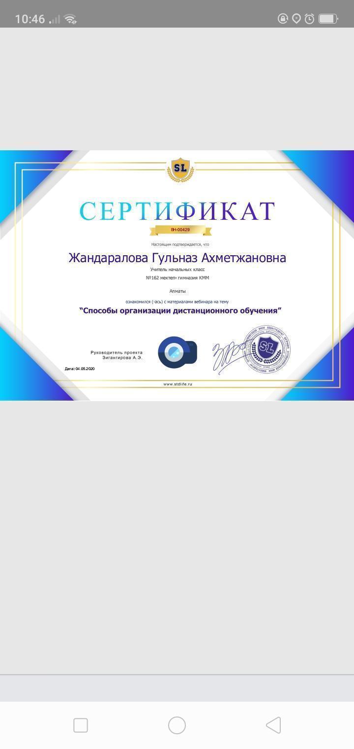 14 май 2020 0 1 2 3 4 5 Алматы қаласы. Турксіб ауданы №162 мектеп-гимназиясы Қашықтықтан оқыту кезінде ұстаздар түрлі байқауларға, онлайн олимпиадаларға қатысып жүлделі орындарға ие болуда. Осы беттің QR-коды:QR-код этой страницы: