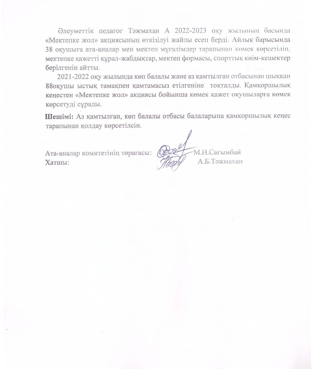 Хаттама "С.Байжанов атындағы №162 мектеп-гимназия" КММ қамқоршылық кеңесінің отырысы