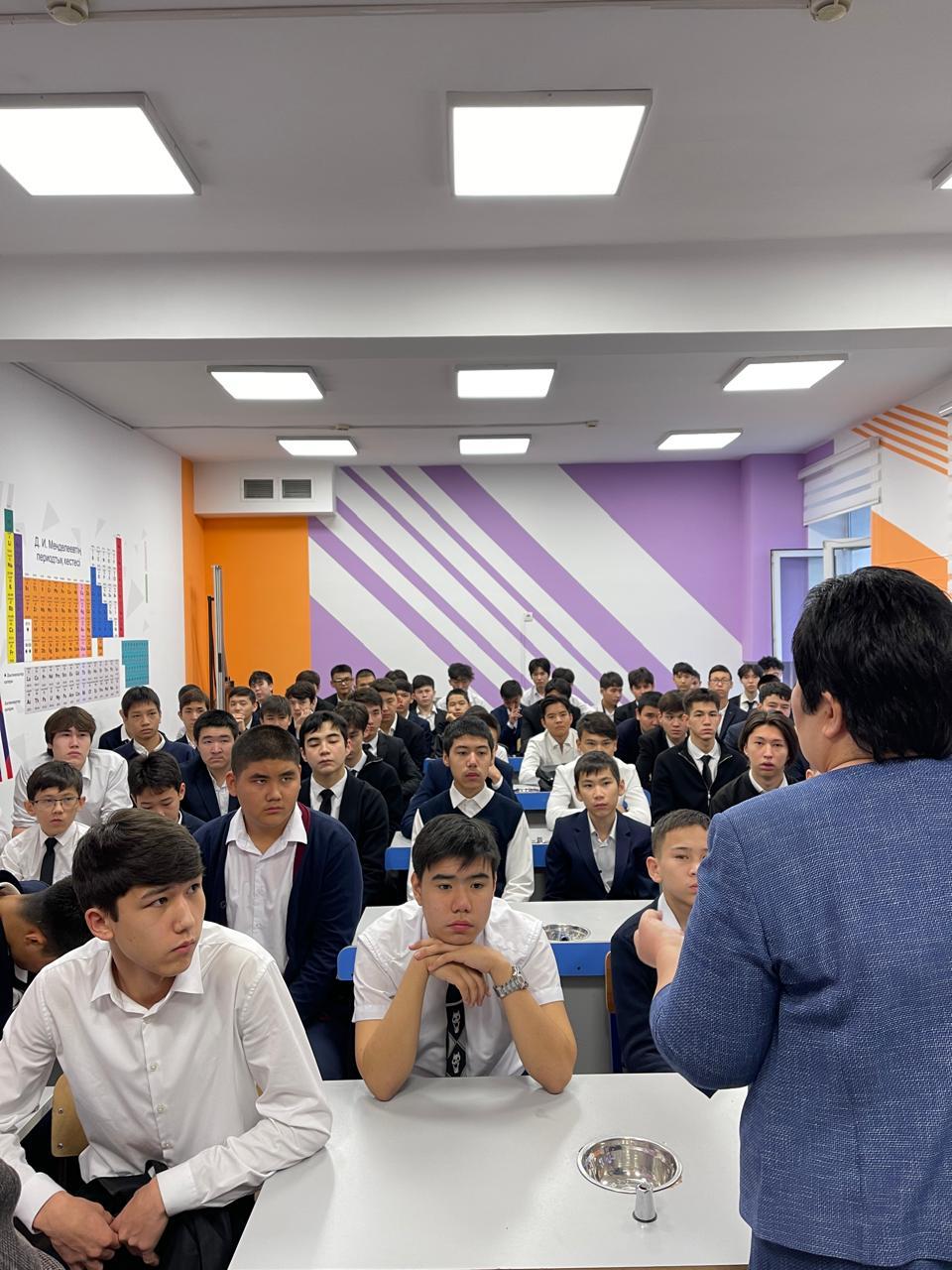 Мектеп ұл балаларымен жиналыс өткізілді. Жиналысқа мектеп-гимназия директоры С.И.Сайдикеева, директордың тәрбие ісі жөніндегі орынбасарлары Г.С.Сералиев, А.Б.Тажмахан, аға тәлімгер Е.Б.Бақытов қатысты.