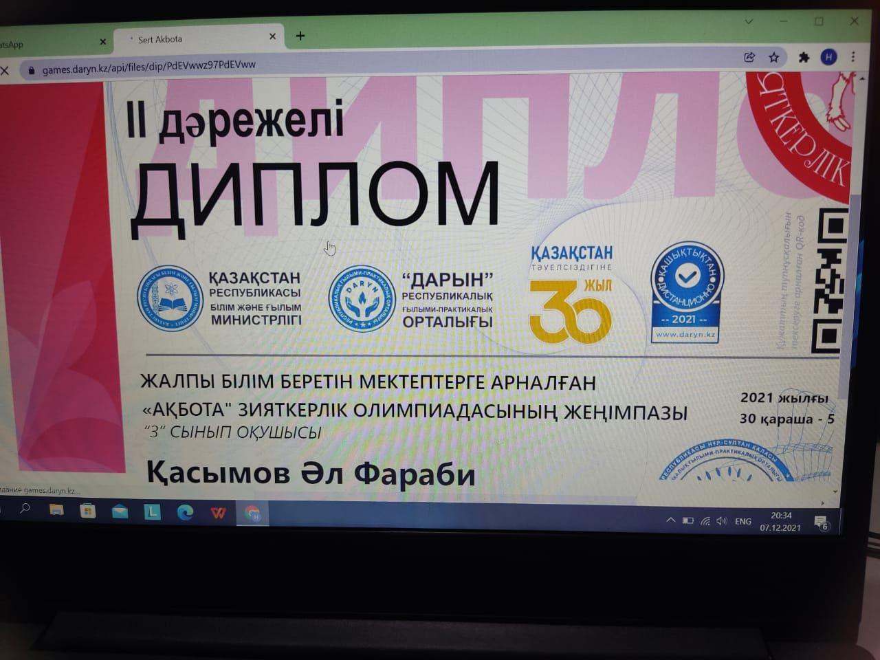 18 январь 2022 0 1 2 3 4 5 "Ақбота" зияткерлік олимпиадасының жеңімпазы Осы беттің QR-коды:QR-код этой страницы: