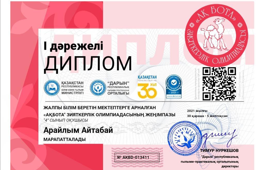 "Ақбота" зияткерлік олимпиадасының жеңімпазы