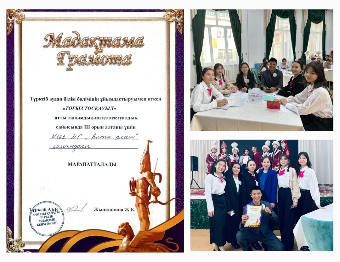 Оқушыларымыз Түрксіб ауданы білім бөлімінің ұйымдастыруымен өткен "Тоғыз тосқауыл" танымдық-интеллектуалдық сайысына қатысын ІІІ орын иеленді.