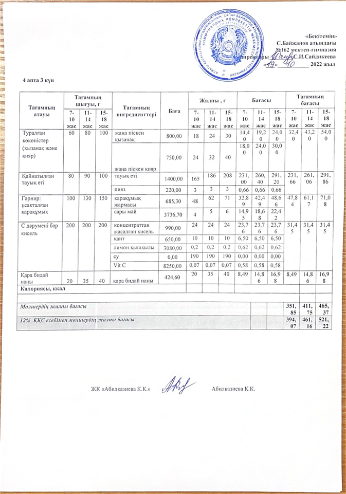 Тамақтандыруды ұйымдастырудың іс-шаралар жоспары