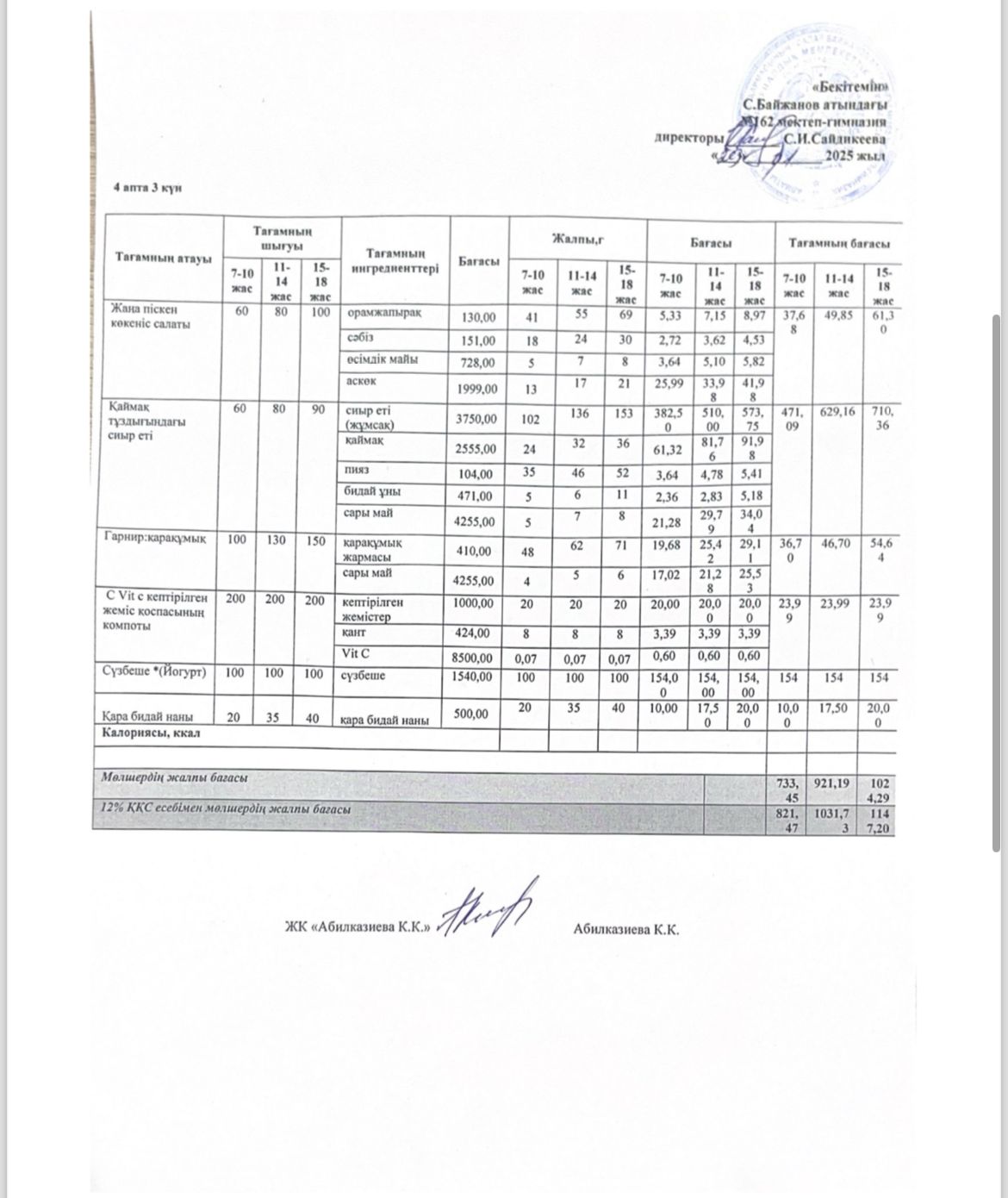 Ас мәзірі жаз-күз 2024-2025 оқу жылы