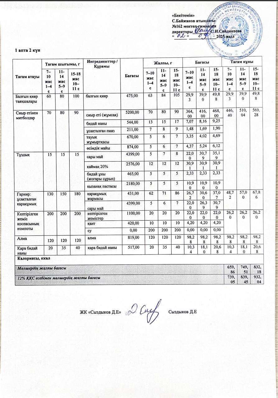 Ас мәзірі жаз-күз 2024-2025 оқу жылы