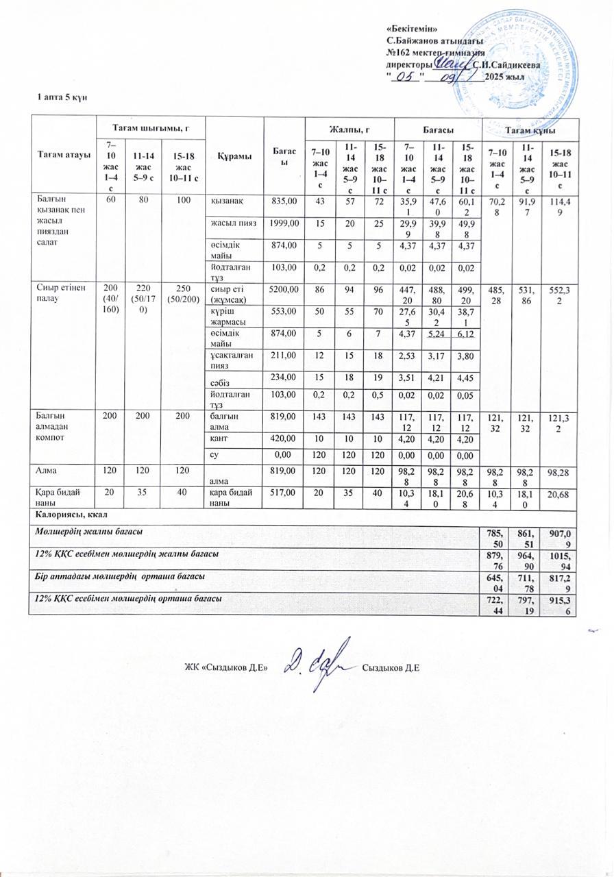 Ас мәзірі жаз-күз 2024-2025 оқу жылы