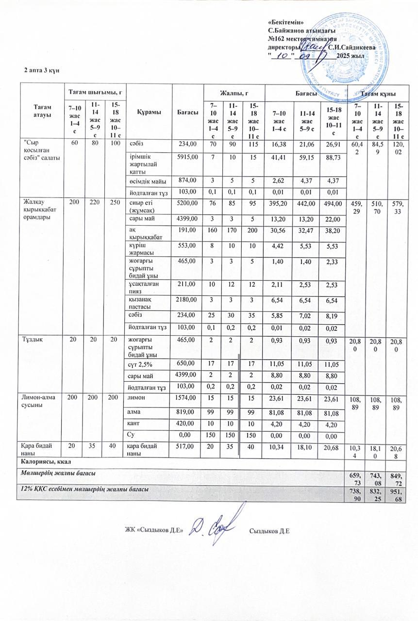 Ас мәзірі жаз-күз 2024-2025 оқу жылы