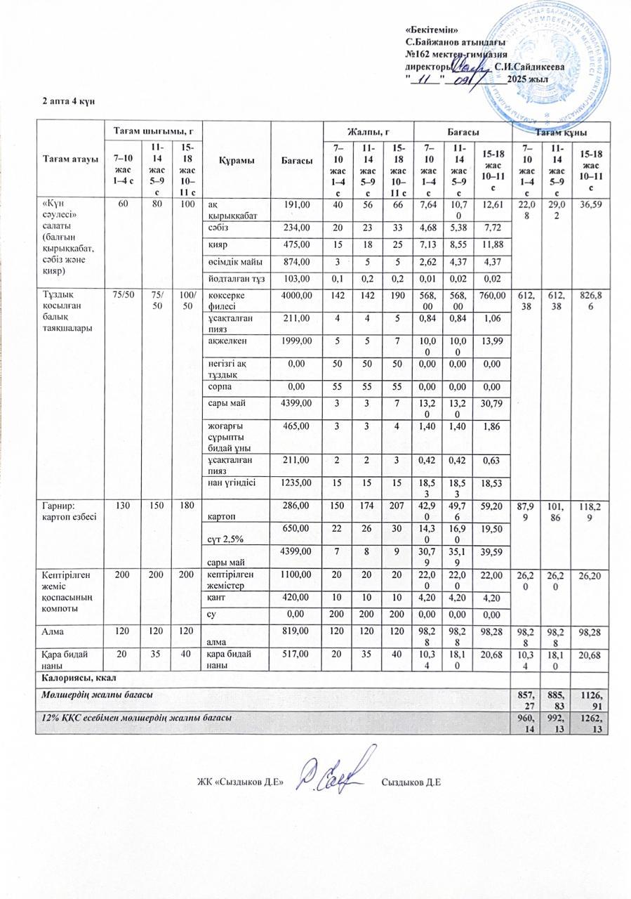 Ас мәзірі жаз-күз 2024-2025 оқу жылы