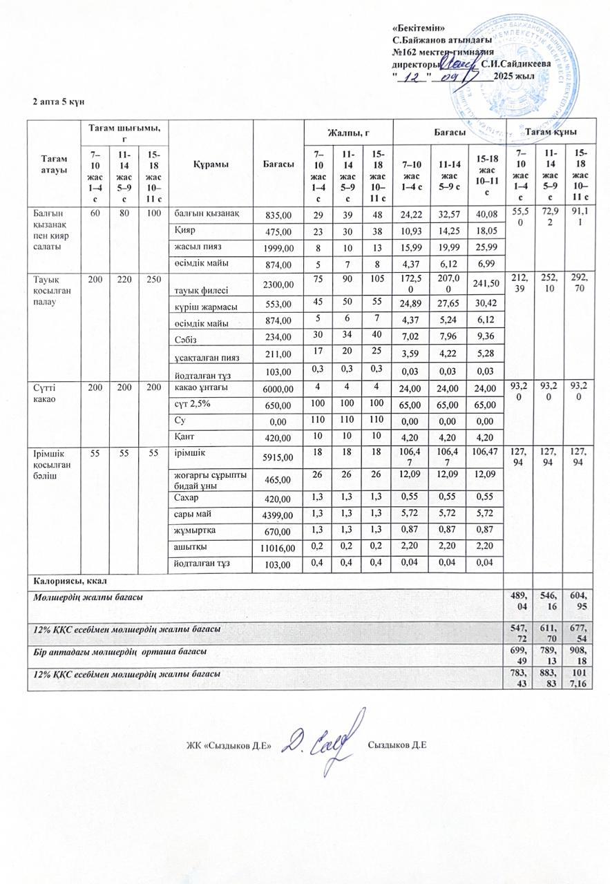 Ас мәзірі жаз-күз 2024-2025 оқу жылы