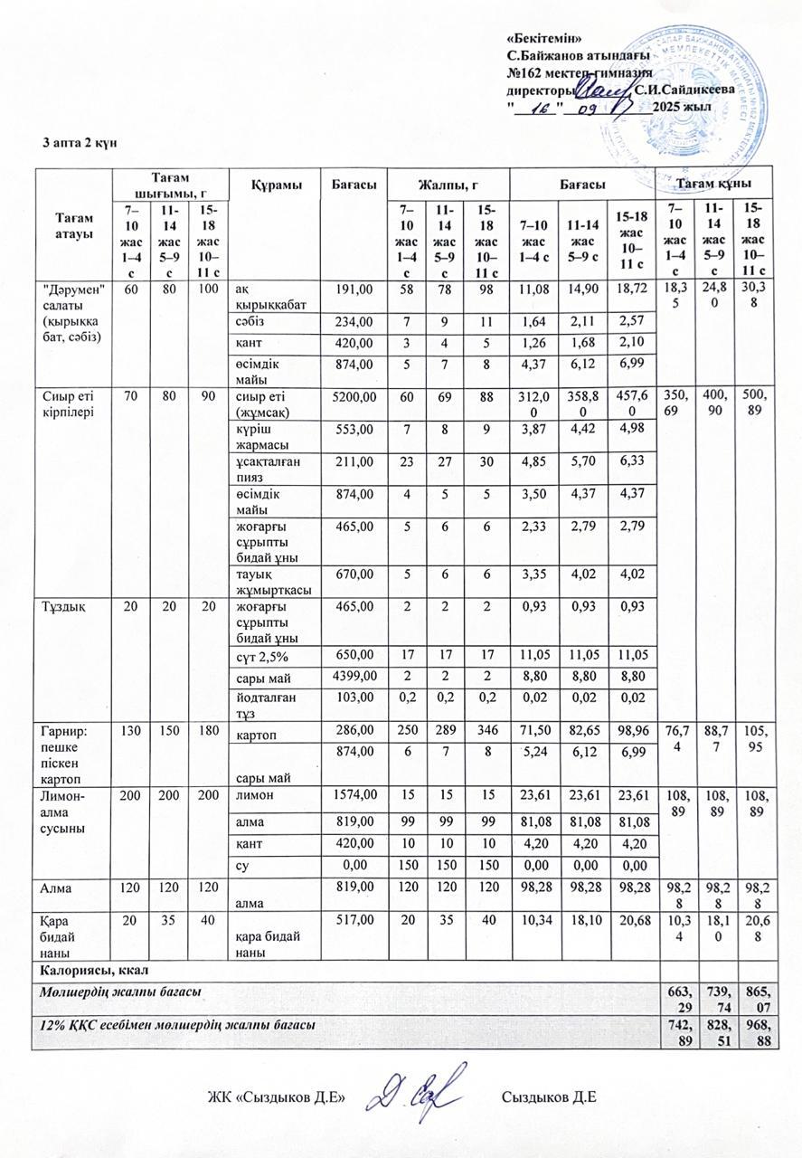 Ас мәзірі жаз-күз 2024-2025 оқу жылы