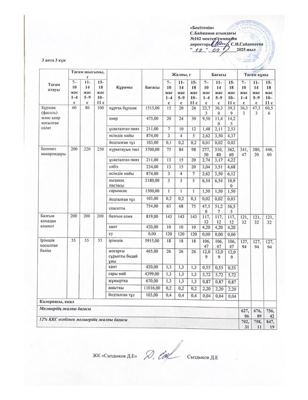 Ас мәзірі жаз-күз 2024-2025 оқу жылы