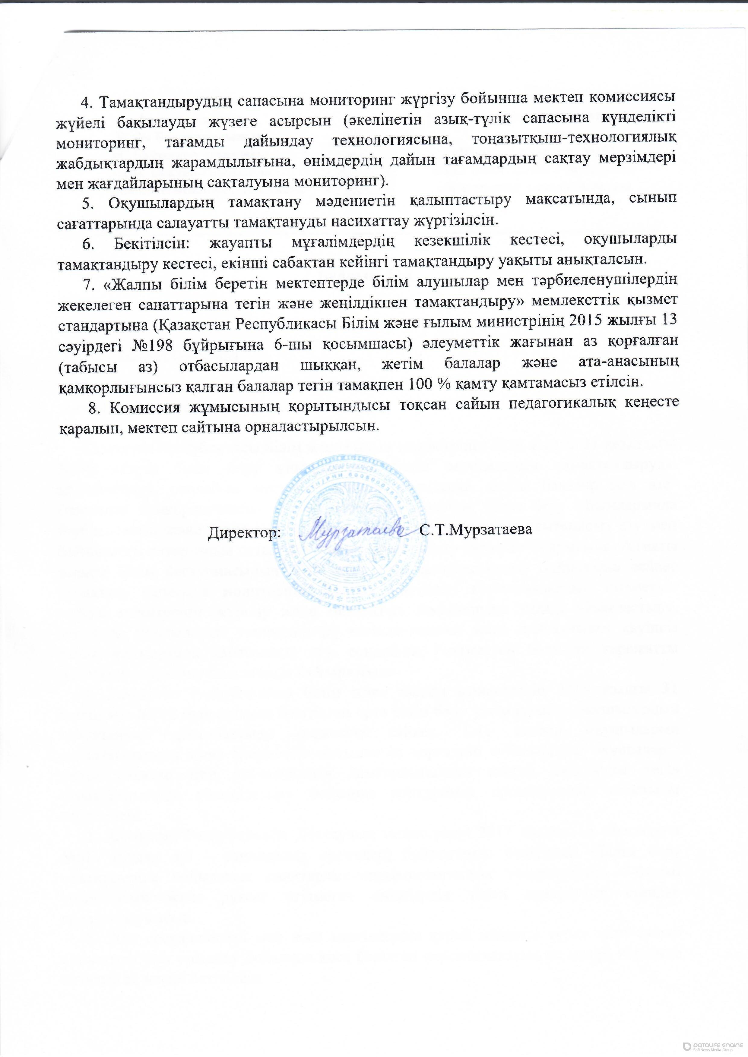 10 январь 2019 0 1 2 3 4 5 Қаладағы орта білім беру ұйымдарында оқушыларды тамақтандыру кезінде сапалы және денсаулыққа қауіпсіз тамақ өнімдерімен қамтамасыз ету туралы бұйрық Осы беттің QR-коды:QR-код этой страницы: