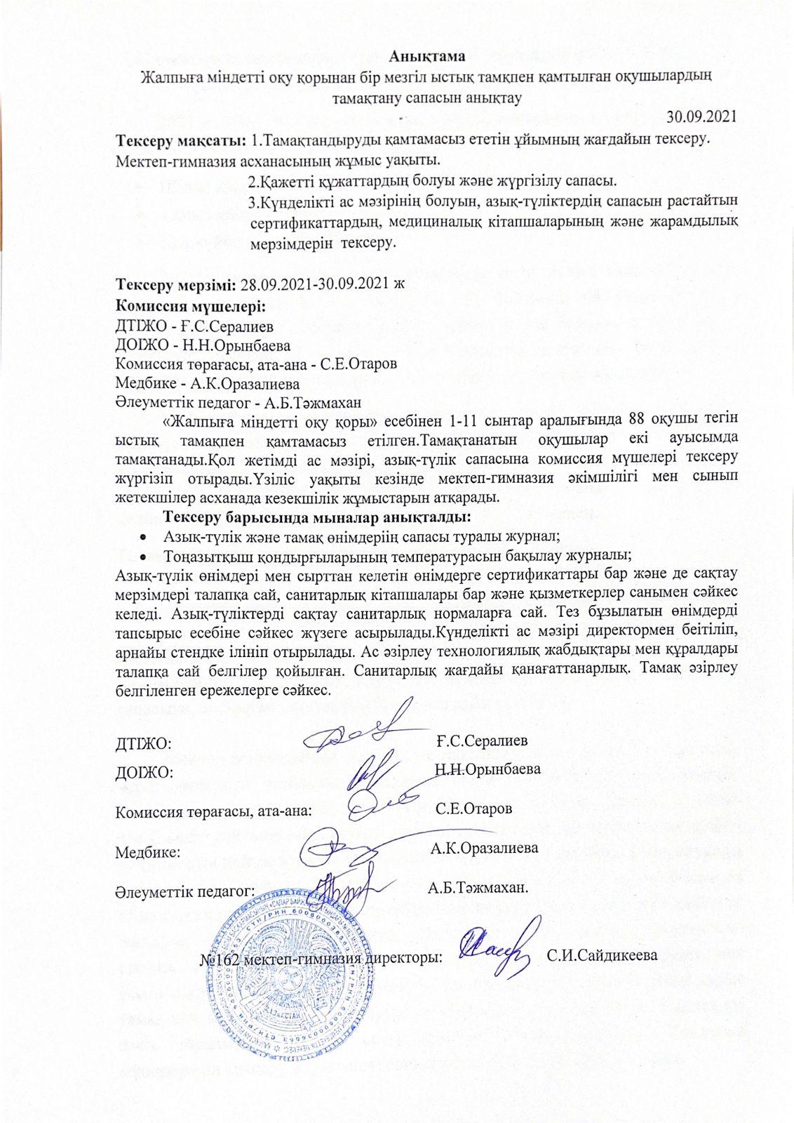 12 октябрь 2021 0 1 2 3 4 5 Тамақтану сапасын анықтау мониторинг қорытындысы Осы беттің QR-коды:QR-код этой страницы:
