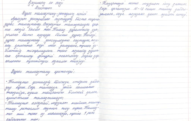 "Дұрыс тамақтану - денсаулық кепілі" диктант жұмысының анықтамасы